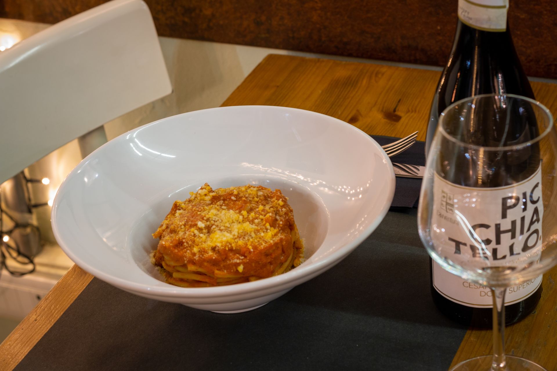 Il menù si apre con la scelta degli antipasti come le pallotte di amatriciana il baccalà mantecato al latte su crostino di pane tostato per poi passare ai primi piatti come la carbonara, l’amatriciana, i secondi tra cui abbacchio, e le nostre speciali polpettine in bocca alla romana, per terminare con i nostri dolci come il ferromisù o la crostata romana e i dolci da bere come la vellutata di pistacchio e rhum.